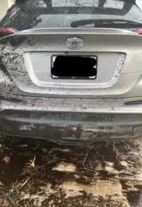 –Hit a vehicle at another home, causing $1000 in damage