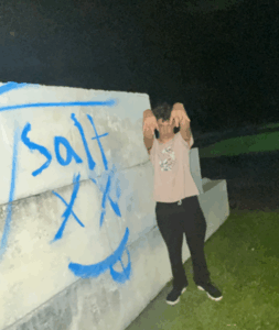 During the investigation, police located blue spray paint cans and other related evidence. A forensic examination of a cellphone associated with the case revealed photographs taken by the offenders, in which Cecil G. Truman III and Levi McDonough were seen posing in front of the graffiti they created at both park locations. The investigation confirmed the use of the nicknames “Salt” for Cecil and “JD” for Levi, further substantiating their involvement.