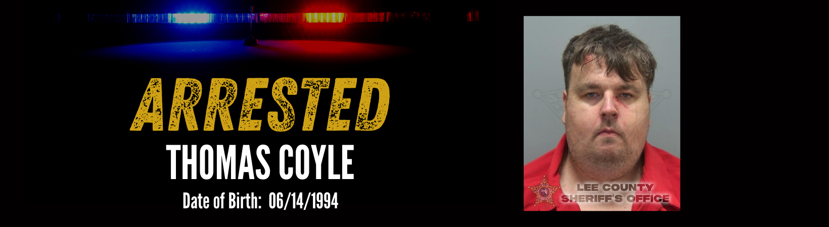 After being medically cleared, Thomas Coyle (DOB 06/14/1994) was taken to the Lee County Jail and charged with: