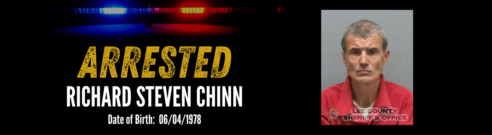 On November 22, 2025, at approximately 11:20 p.m., officers responded to SW 26th Pl. in Cape Coral regarding an unknown male seen walking around a new construction property. The male, later identified as Richard Steven Chinn (DOB: 06/04/1978), repeatedly avoided contact, fled from officers, and was ultimately located hiding behind trash cans in an area with recent burglaries. Officers discovered that Chinn had been seen wearing the Mossy Oak camouflage jacket believed to have been stolen during the November 7 burglary. Chinn was arrested and transported to the Lee County Jail for loitering and prowling and resisting an officer without violence.