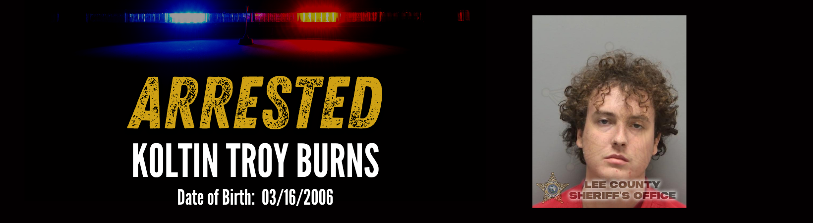 CAPE CORAL, FL – In the early morning hours of Friday, March 20, 2026, Cape Coral Police officers arrested Koltin Troy Burns (DOB 3/16/2006) of Cape Coral after responding to a report of a vehicle burglary in progress on NE 18th Avenue.