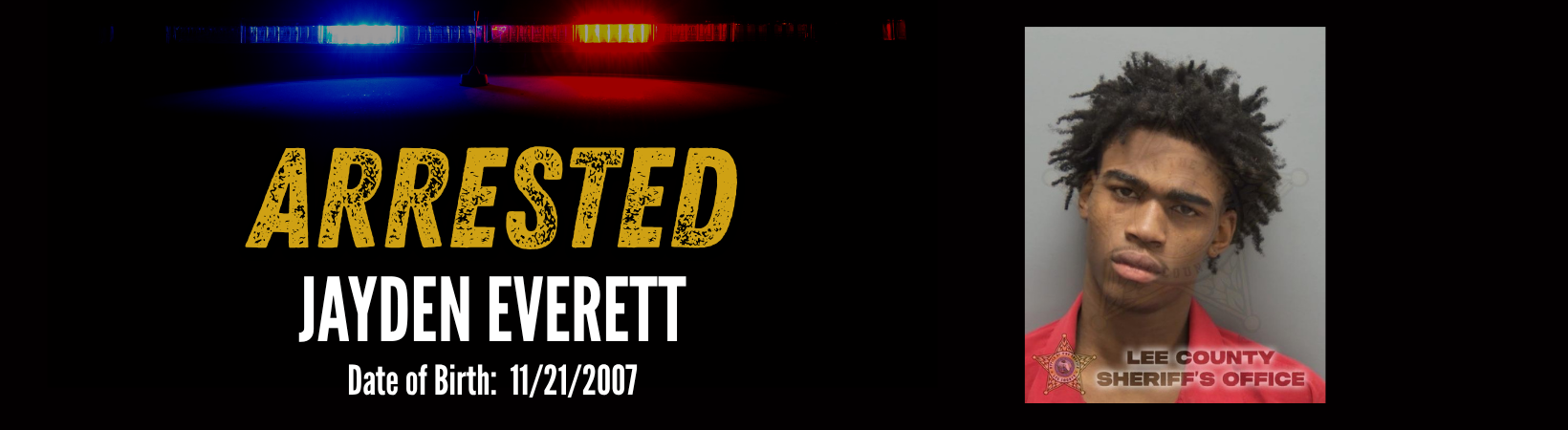 Based on the investigation, Jayden Everett was arrested and transported to the Lee County Jail on the following charge: