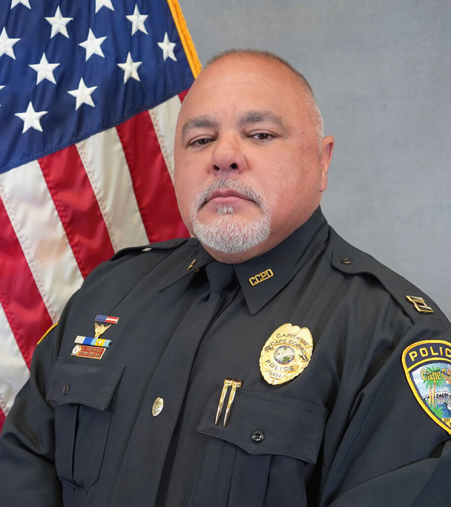 Before joining the department, Captain Chenault served honorably in the United States Marine Corps for eight years and is a proud Gulf War Veteran. He holds a Bachelor of Arts degree in Public Safety Administration and remains committed to serving the Cape Coral community with professionalism, integrity, and dedication.